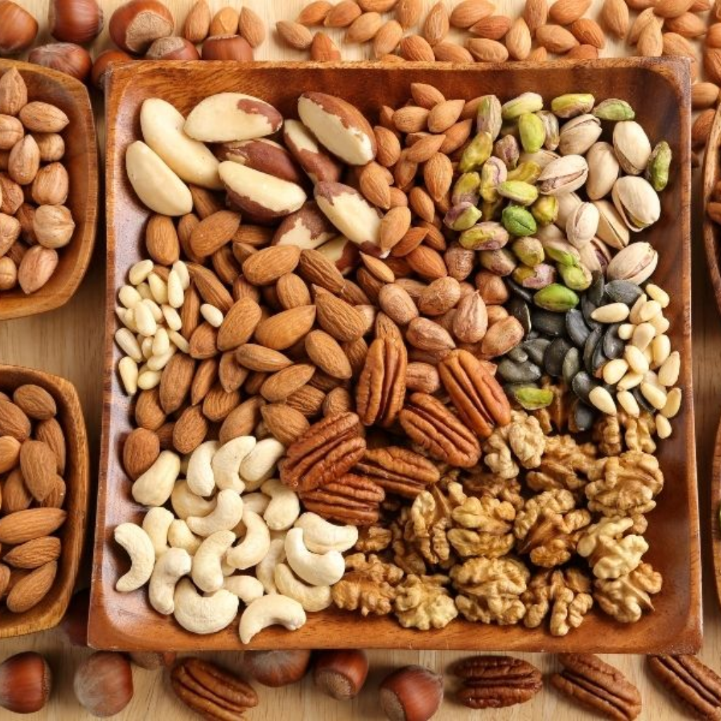 Hạnh nhân & Hạt điều: Giàu Vitamin E và khoáng chất, giúp làm đẹp da, giữ dáng và tăng cường hệ miễn dịch.