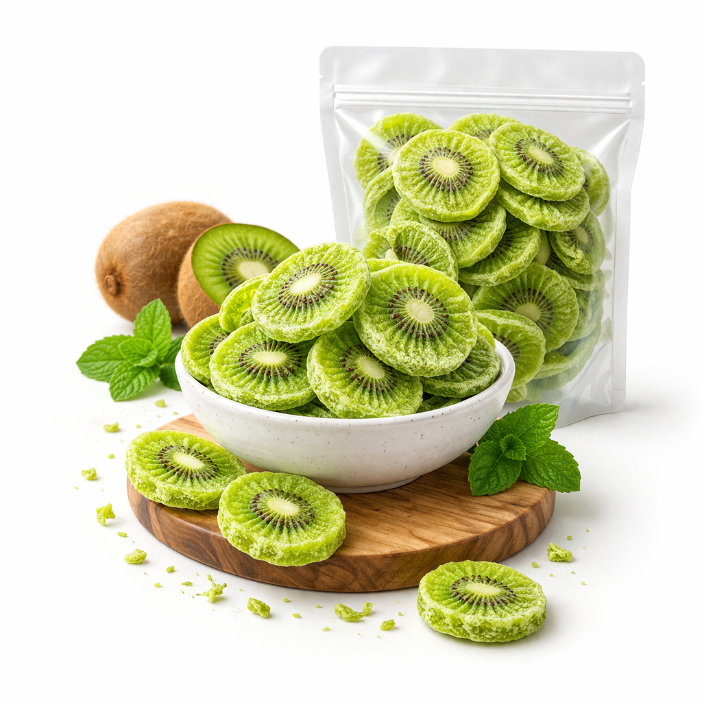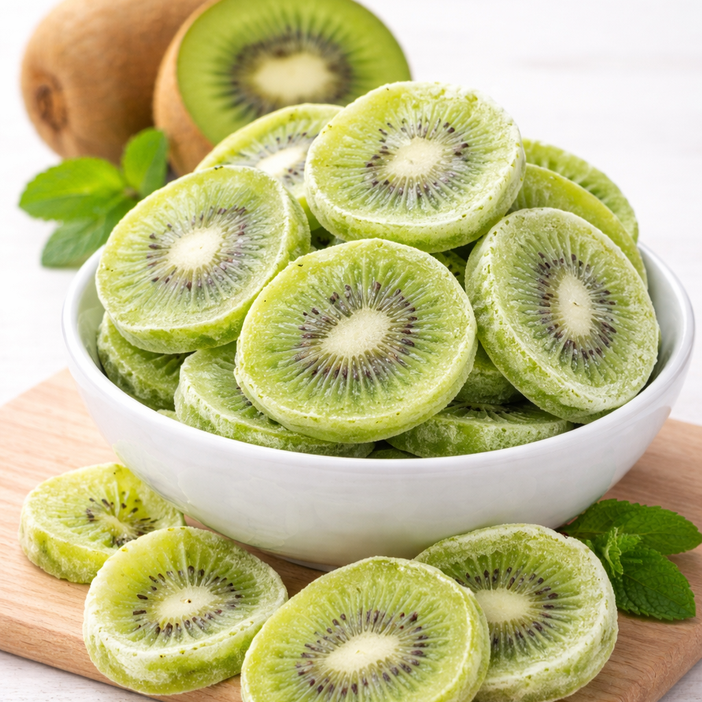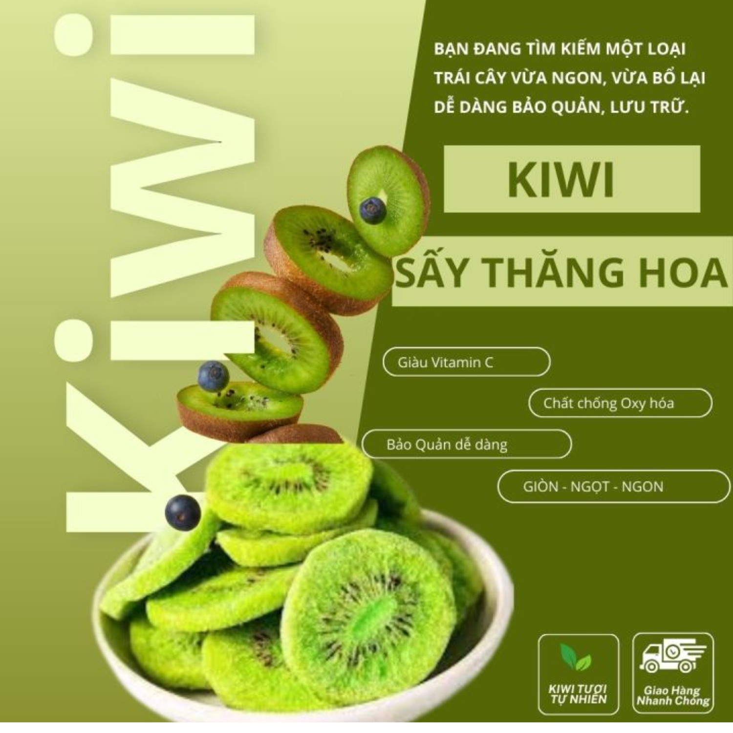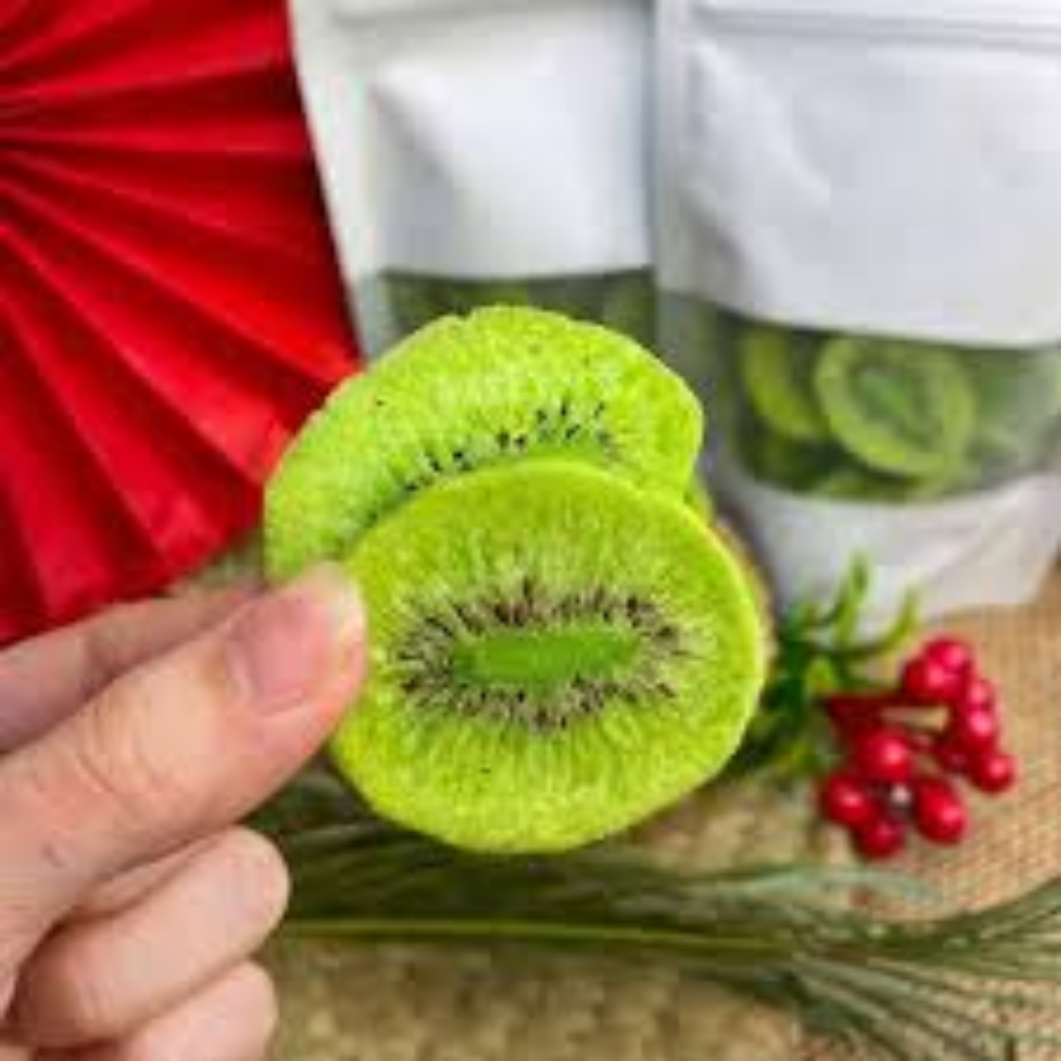Kiwi sấy thăng hoa là sự kết hợp hoàn hảo giữa công nghệ hiện đại và hương vị tự nhiên thuần khiết. Những lát kiwi được tuyển chọn kỹ lưỡng, cắt khoanh tròn đều đặn và giữ trọn vẹn sắc xanh mướt mắt cùng những hạt nhỏ li ti đặc trưng. Khác với các phương pháp sấy nhiệt thông thường làm quả bị teo tóp hay biến màu, công nghệ sấy thăng hoa giúp từng miếng trái cây duy trì được cấu trúc nguyên bản, tạo nên độ xốp nhẹ và cảm giác giòn tan thú vị ngay khi thưởng thức. Sản phẩm không chỉ gây ấn tượng bởi vị chua thanh, ngọt dịu kích thích vị giác mà còn là “kho tàng” dinh dưỡng khi giữ lại được tới 98% hàm lượng Vitamin C và khoáng chất. Được đóng gói chỉn chu trong bao bì hiện đại, đây không chỉ là món ăn vặt lành mạnh cho chế độ Eat Clean mà còn là lựa chọn tinh tế để trang trí các món bánh, trà hoa quả hoặc làm quà tặng nông sản cao cấp.